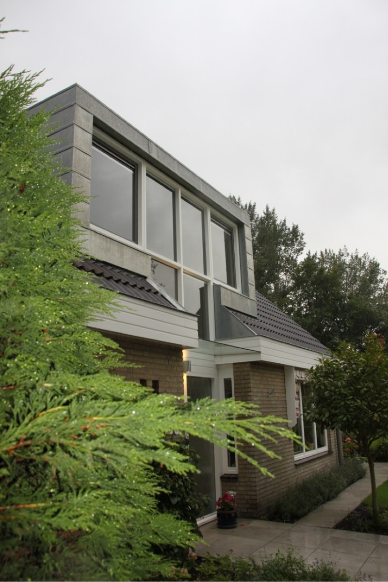 Dakkapel voor uitbreiding badkamer met zinken afwerking Het ontwerpen en aanvragen van vergunning voor het realiseren van een dakkapel. Deze dakkapel biedt ruimte voor een ruim en licht trappenhuis en het vergroten van de bestaand badkamer. Gerealiseerd in 2017.